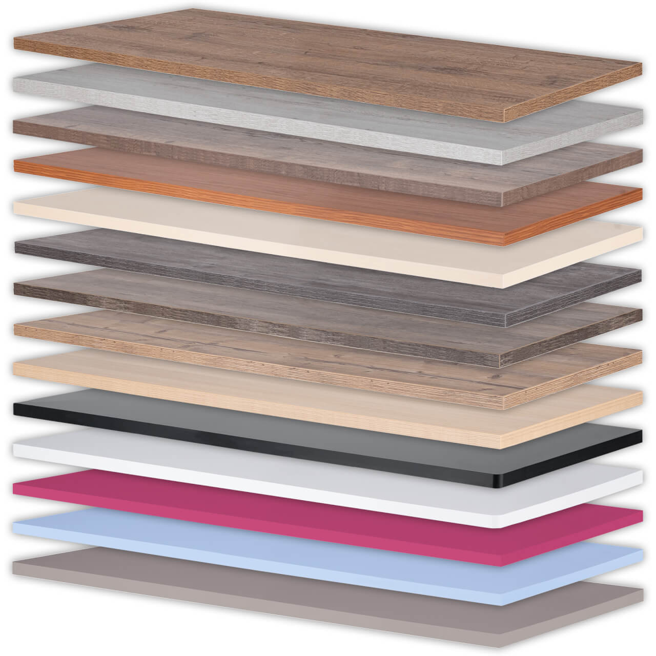 Wir haben eine eigene Schreinerei und wählen unsere Lieferanten sorgfältig aus. Zu unseren Partnern gehört zum Beispiel der österreichische Hersteller Egger. Sie können aus 15 Farbdekoren und 3 verschiedenen Materialstärken wählen.