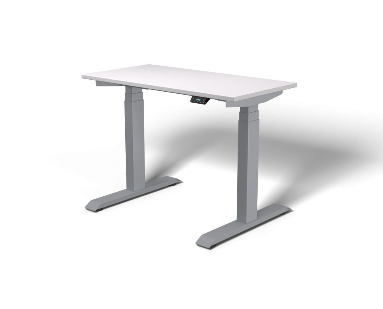Die Höhe des Tisches lässt sich ganz einfach im Bereich von 61–126 cm einstellen. Dank sanftem Anfahren und Stoppen erfolgt der Wechsel zwischen den Positionen völlig ruckfrei.
