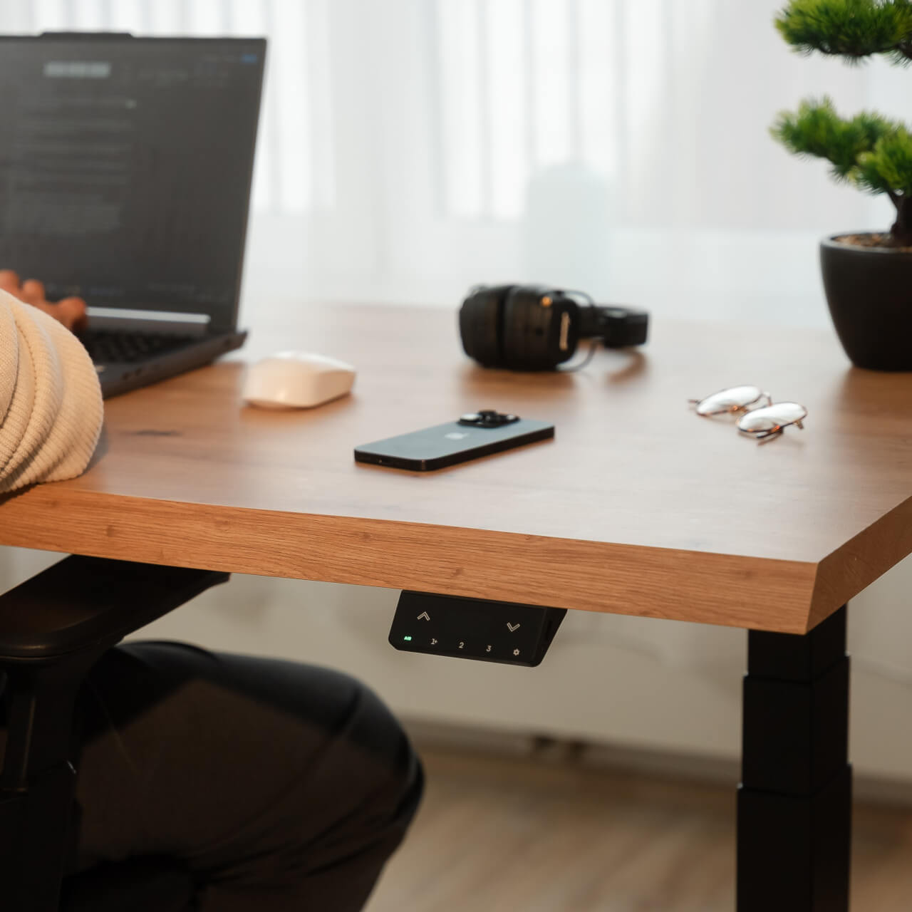 Der Positionswechsel ist schnell, man kann in 10 Sekunden vom Sitzen zum Stehen übergehen. Außerdem gibt es ein cleveres Anti-Kollisionssystem. Wenn der Tisch auf ein Hindernis trifft, hält er an und fährt ein Stück zurück. Also keine Sorge, es ist kein Lkw-Heber.