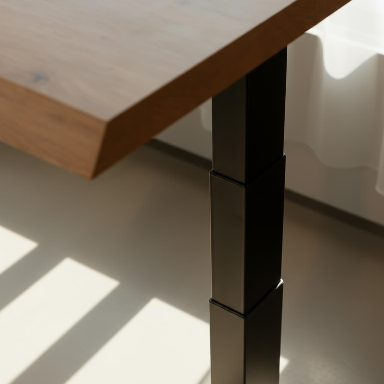 Das robuste Tischgestell mit einem Gewicht von fast 36 kg und einer Tragkraft von 150 kg sorgt dafür, dass der Tisch selbst in der höchsten Position absolut stabil bleibt.
