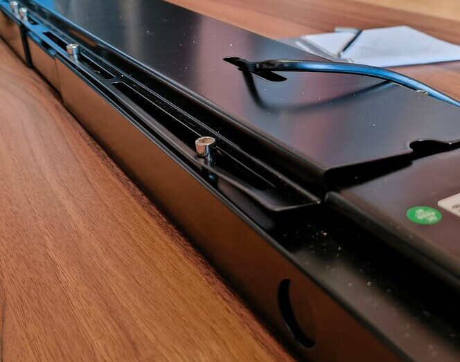 Der zweite (damit zusammenhängende) Stolperstein war das Anbringen der Beine an die Platte, bei dem ich nicht nur die richtige Mitte finden musste, sondern auch bestimmen musste, wie weit die Beine von den Kanten der Platte entfernt sein sollten (was z. B. für die Stabilität des Tisches am besten ist). Ich habe das nirgendwo gefunden (ich habe es schließlich anhand der Kabelhalterung festgestellt, siehe oben), ebenso wie die Tatsache, dass eine saubere Platte geliefert wird und alles, was auf der Platte montiert ist, mit selbstschneidenden Schrauben befestigt wird (einschließlich des Antreibers). Es ist eine mühsamere Methode, als vorgefertigte Schraubenlöcher zu haben und einfach die Beine und die Bedienung mit normalen Schrauben anzuschrauben, so oder so gibt es Ihnen mehr Freiheit, Elemente (wie den Bediener) auf dem Tisch genau so zu platzieren, wie Sie wollen, also ist es ein Plus und ein Minus zur gleichen Zeit, es ist nur schade, dass es nirgends erwähnt wird (oder ich konnte es nicht in den Tischinformationen finden).
