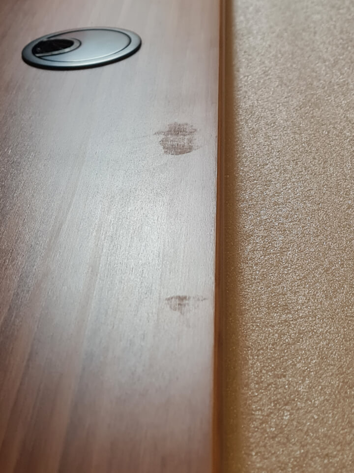 Qualitätstisch. Das zugesandte kostenlose Muster war ausschlaggebend für die Auswahl, da in meinem Fall die Oberfläche der Tischplatte entscheidend war (einige sind nicht ganz glatt).