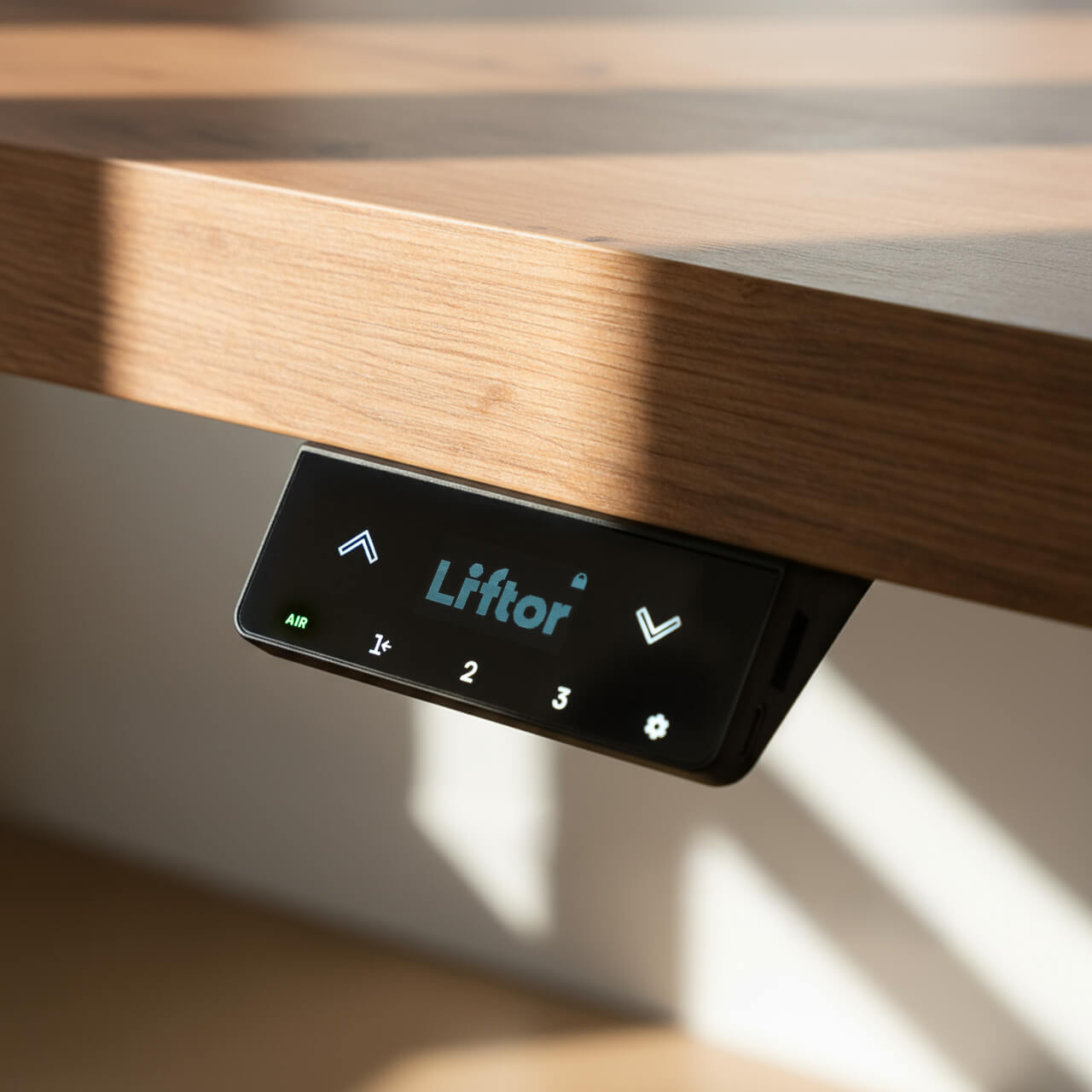 Der Tisch merkt sich die Einstellungen (drei Höhenpositionen), auch wenn er vom Stromnetz getrennt ist