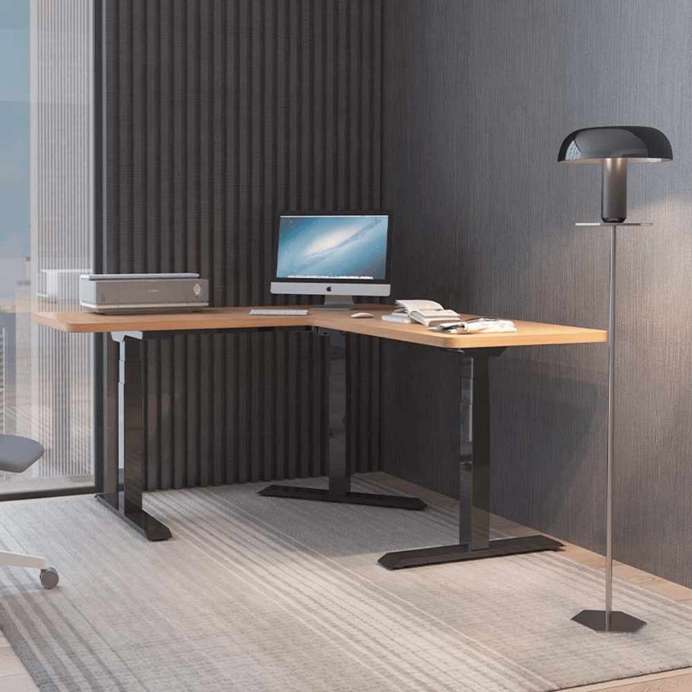 Liftor L hat ein L-förmiges Gestell, das sich ideal für Eckräume eignet. Der höhenverstellbare Tisch hat eine solide 3-Segment-Konstruktion und eine Tragfähigkeit von 150 kg. Die Hubgeschwindigkeit des höhenverstellbaren Tisches beträgt 38 mm/Sekunde und wird über eine Speichersteuerung mit LED-Anzeige gesteuert.