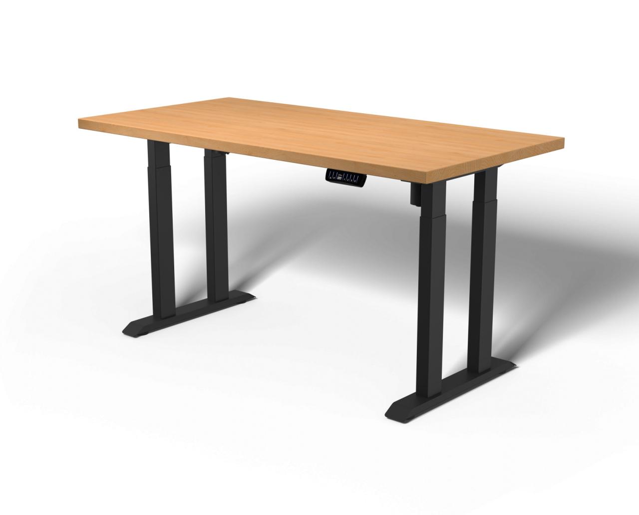 Der Höhenwechsel erfolgt schnell – vom Sitzen zum Stehen bewegt sich der Tisch in etwa 12 Sekunden.
