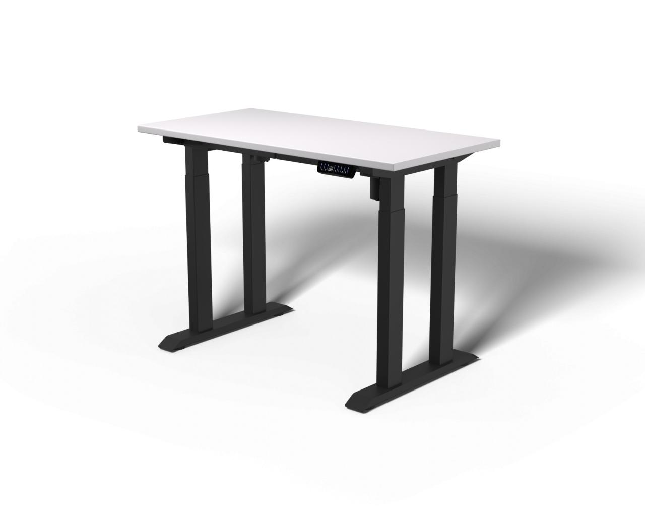 Der Höhenwechsel erfolgt schnell – vom Sitzen zum Stehen bewegt sich der Tisch in etwa 12 Sekunden.