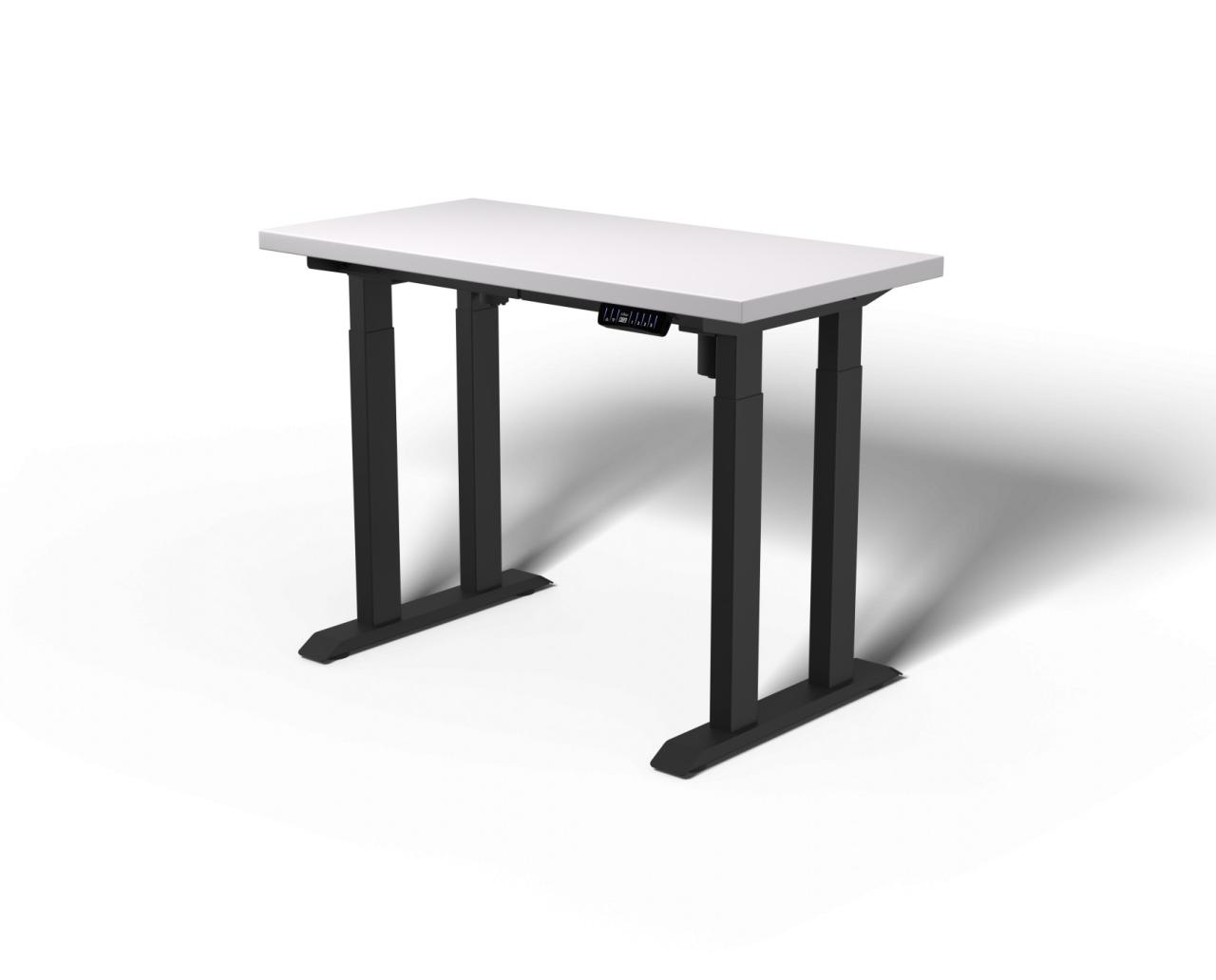 Der Höhenwechsel erfolgt schnell – vom Sitzen zum Stehen bewegt sich der Tisch in etwa 12 Sekunden.