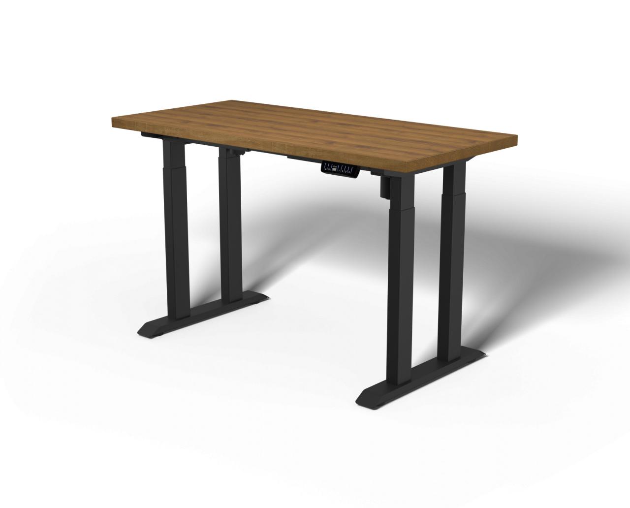 Der Höhenwechsel erfolgt schnell – vom Sitzen zum Stehen bewegt sich der Tisch in etwa 12 Sekunden.