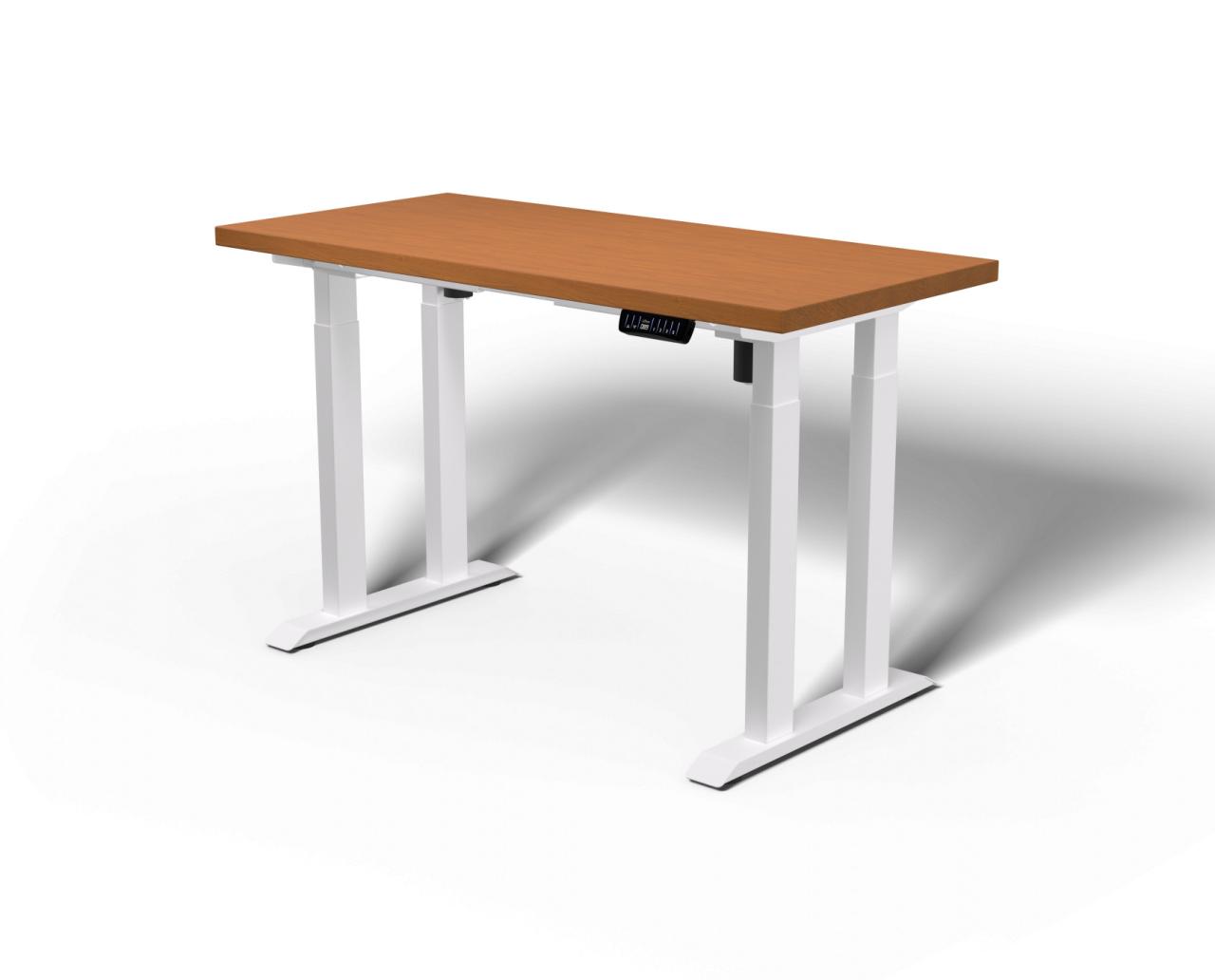 Der Höhenwechsel erfolgt schnell – vom Sitzen zum Stehen bewegt sich der Tisch in etwa 12 Sekunden.