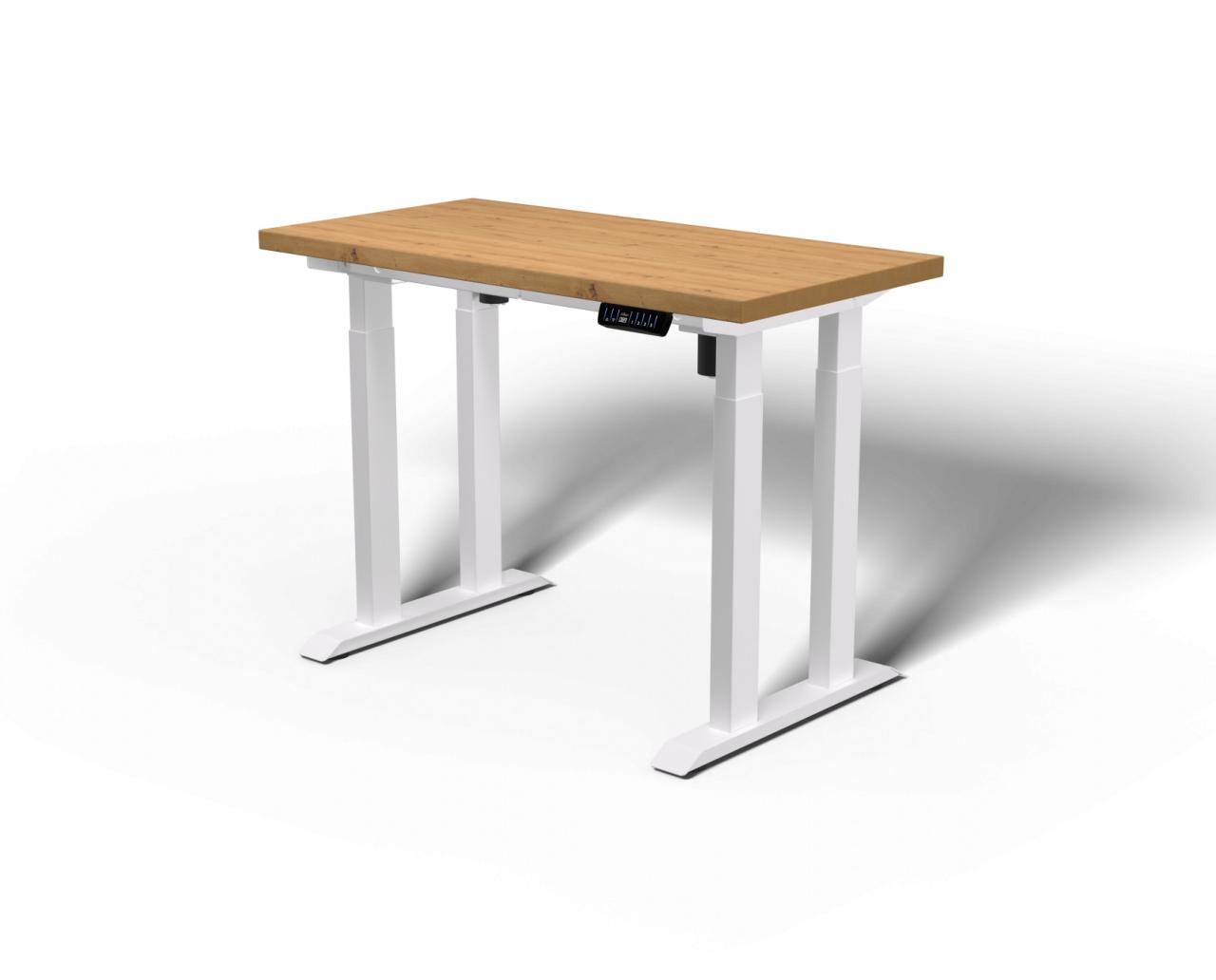 Der Höhenwechsel erfolgt schnell – vom Sitzen zum Stehen bewegt sich der Tisch in etwa 12 Sekunden.