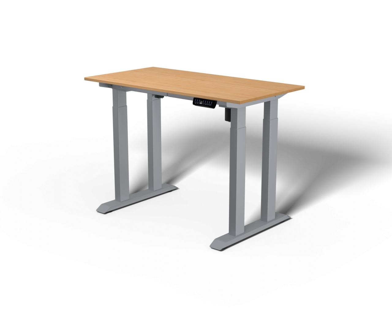 Der Höhenwechsel erfolgt schnell – vom Sitzen zum Stehen bewegt sich der Tisch in etwa 12 Sekunden.