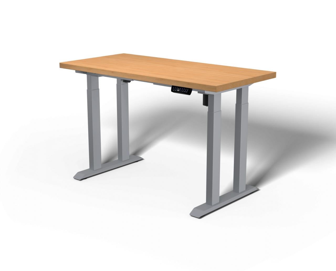 Der Höhenwechsel erfolgt schnell – vom Sitzen zum Stehen bewegt sich der Tisch in etwa 12 Sekunden.