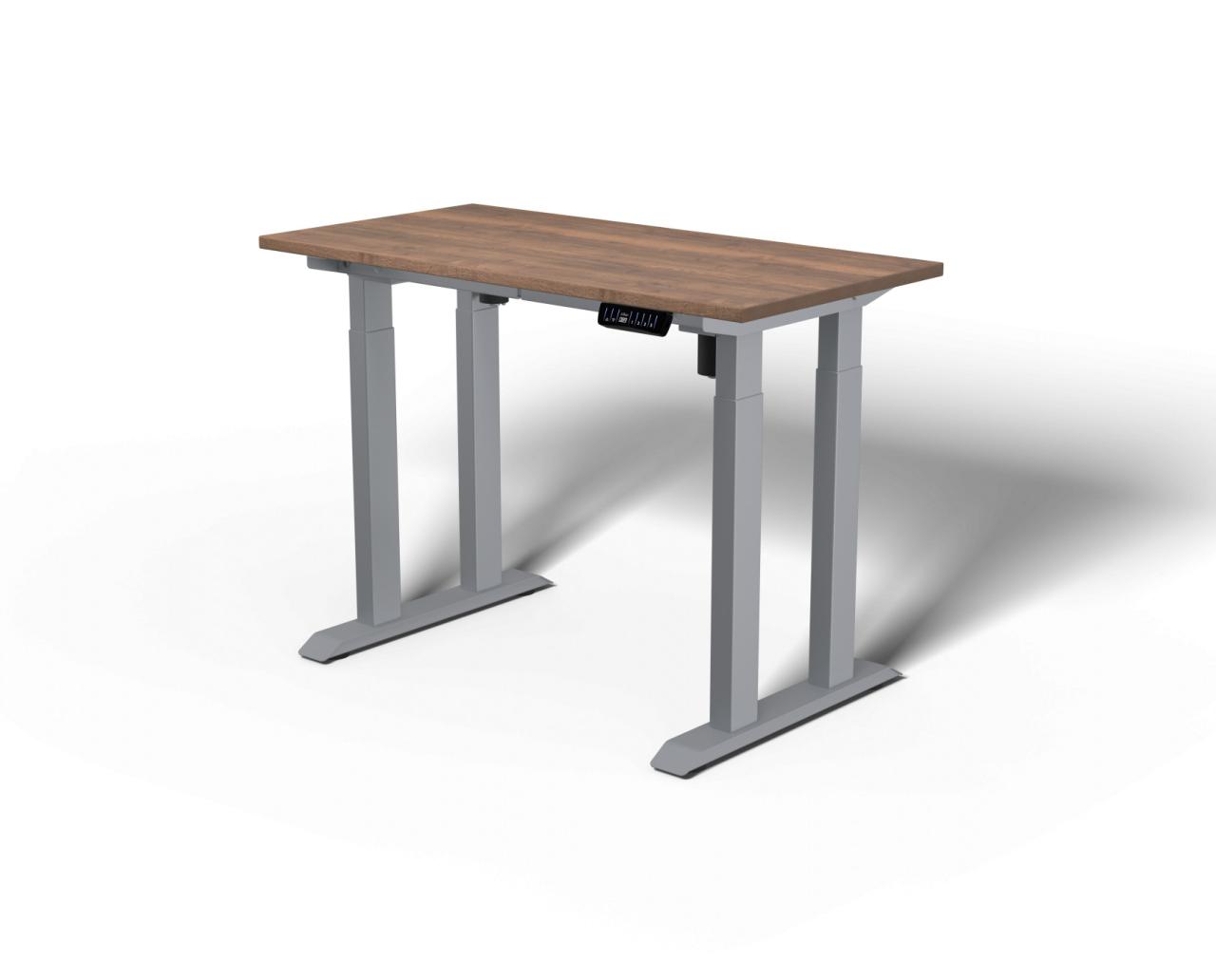 Der Höhenwechsel erfolgt schnell – vom Sitzen zum Stehen bewegt sich der Tisch in etwa 12 Sekunden.