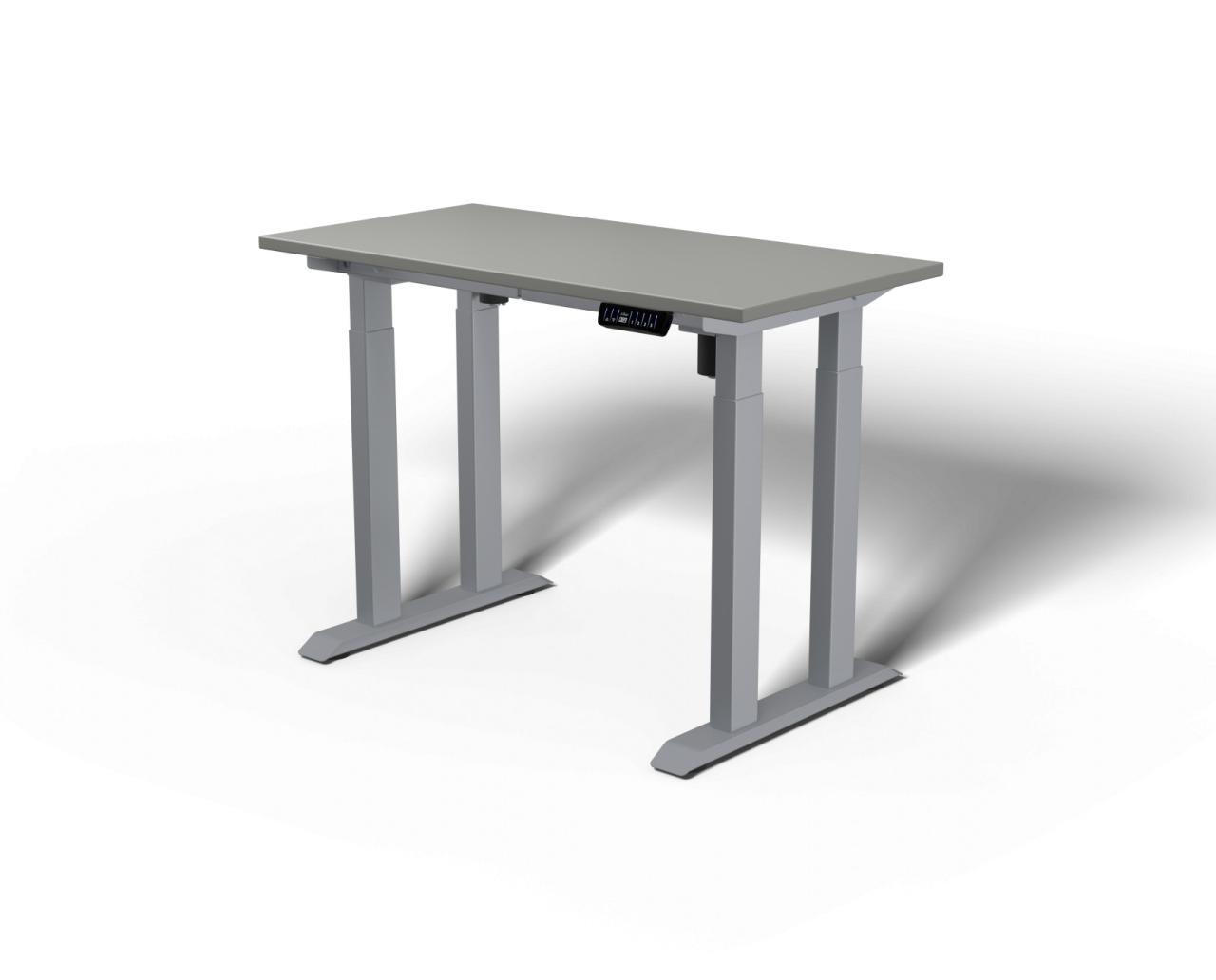 Der Höhenwechsel erfolgt schnell – vom Sitzen zum Stehen bewegt sich der Tisch in etwa 12 Sekunden.
