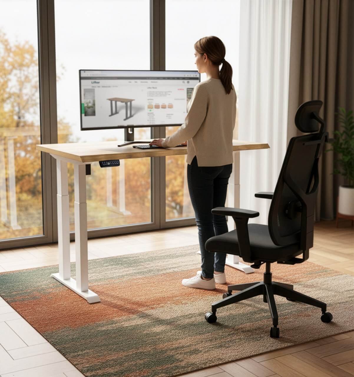 Während die meisten höhenverstellbaren Schreibtische nur auf zwei Beinen stehen, bietet der Liftor Rock eine Konstruktion mit vier festen Stützpunkten. Dadurch ist er der Einzige seiner Klasse, der absolute Stabilität in allen Höhenlagen garantieren kann. Kein Wackeln, keine Kompromisse – nur eine ebene, unerschütterliche Arbeitsfläche, auf die Sie sich in allen Situationen verlassen können.