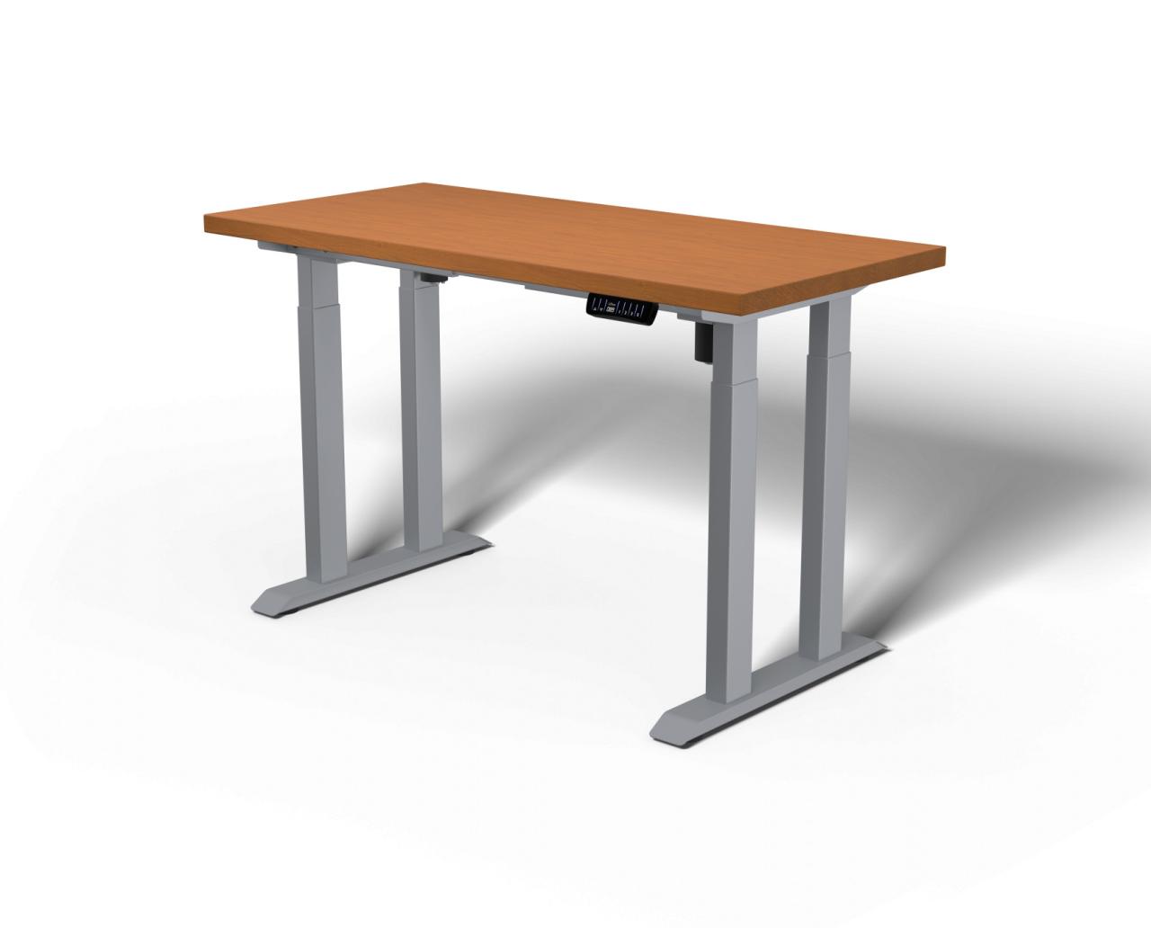 Der Höhenwechsel erfolgt schnell – vom Sitzen zum Stehen bewegt sich der Tisch in etwa 12 Sekunden.
