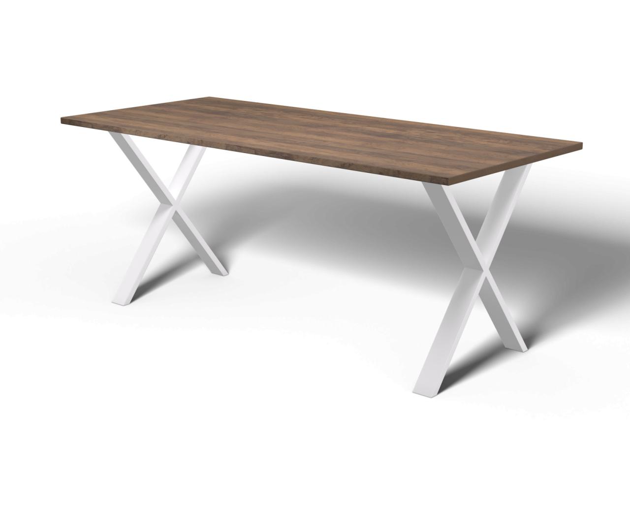 Der Xaver-Tisch bietet die perfekte Kombination aus rustikalem Industriestil und soliden Tischbeinen. Die robusten, X-förmigen Stahlbeine verleihen dem Tisch genau die richtige Portion Charme. Dieser Schreibtisch findet seinen Einsatz in der Küche als Esstisch oder im Büro, wo der Xaver-Schreibtisch durch sein raffiniertes Design herausragen wird.