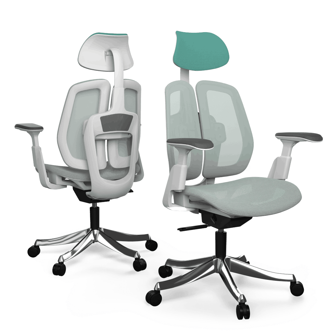 Die innovative zweiteilige Rückenlehne hat eine unabhängige Befestigung der beiden Teile. Jedes Teil der Rückenlehne lässt sich nach allen Seiten bewegen und passt sich leicht an Ihre Sitzposition an. So wird Ihr Rücken immer optimal gestützt und Sie können besser arbeiten.